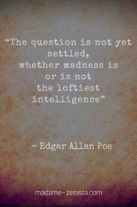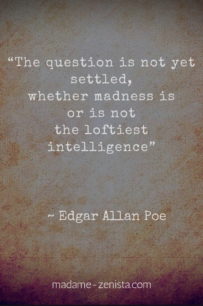“The question is not yet settled, whether madness is or is not the loftiest intelligence” Quote by Edgar Allan Poe.