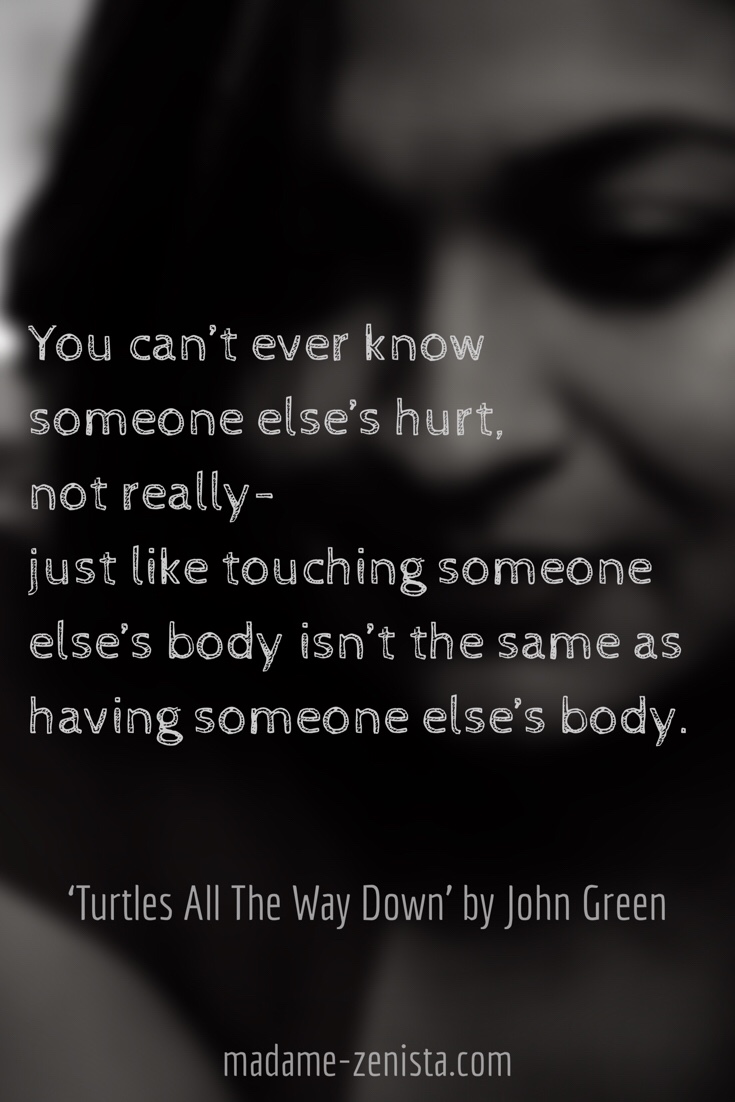 “You can’t ever know someone else’s hurt, not really – just like touching someone else’s body isn’t the same as having someone else’s body”