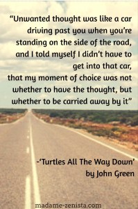 “Unwanted thought was like a car driving past you when you’re standing on the side of the road, and I told myself I didn’t have to get into the car, that my moment of choice was not whether to have the thought, but whether to be carried away by it”