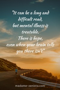 It can be a long and difficult road, but mental illness is treatable. There is hope, even when your brain tells you there isn’t